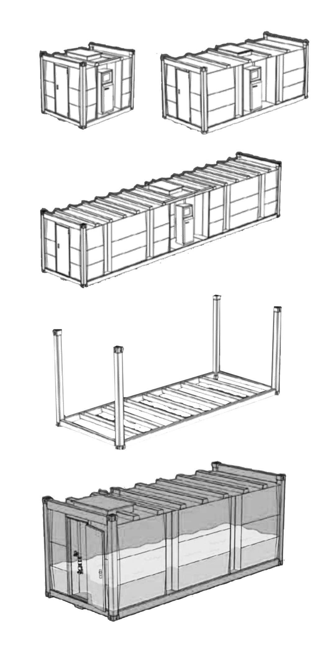 The container is a cubic tank with equipment niches for filling pump, power generator, filter systems and electric control.